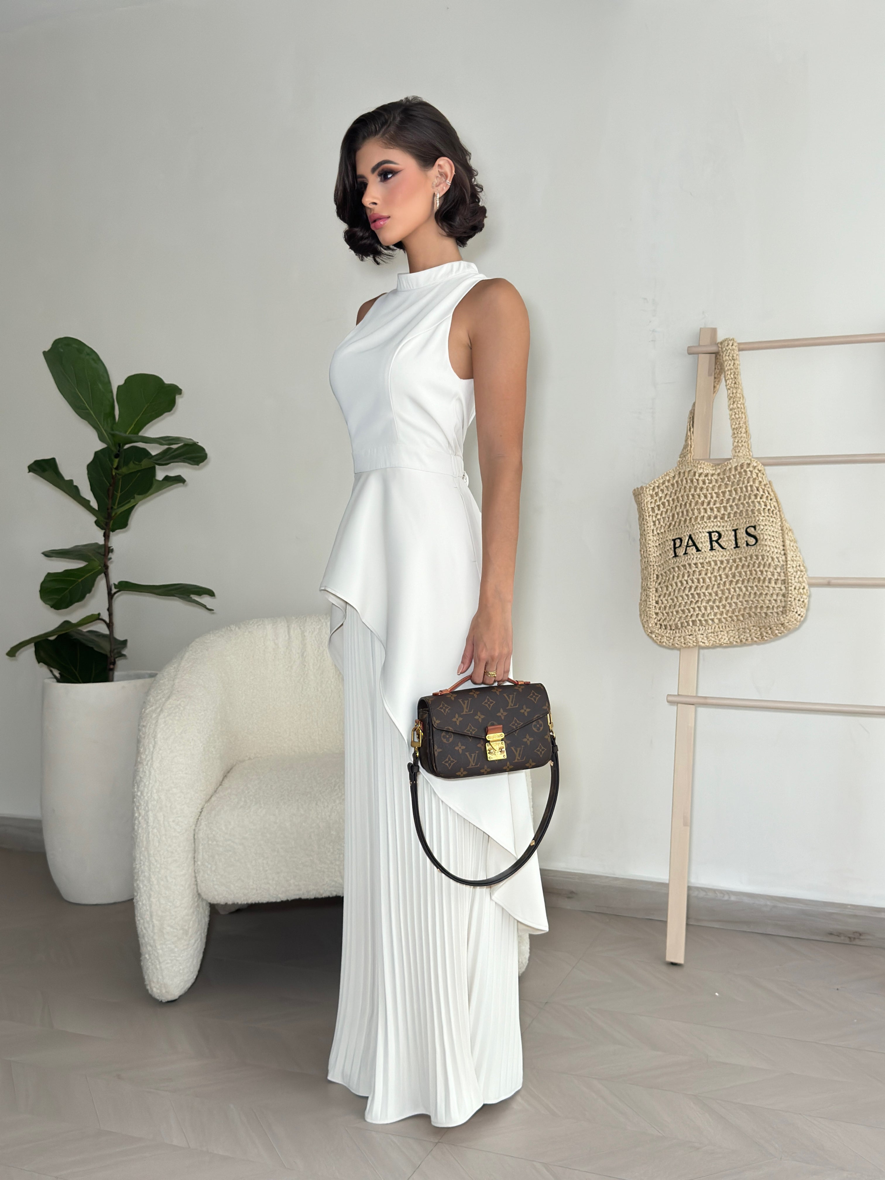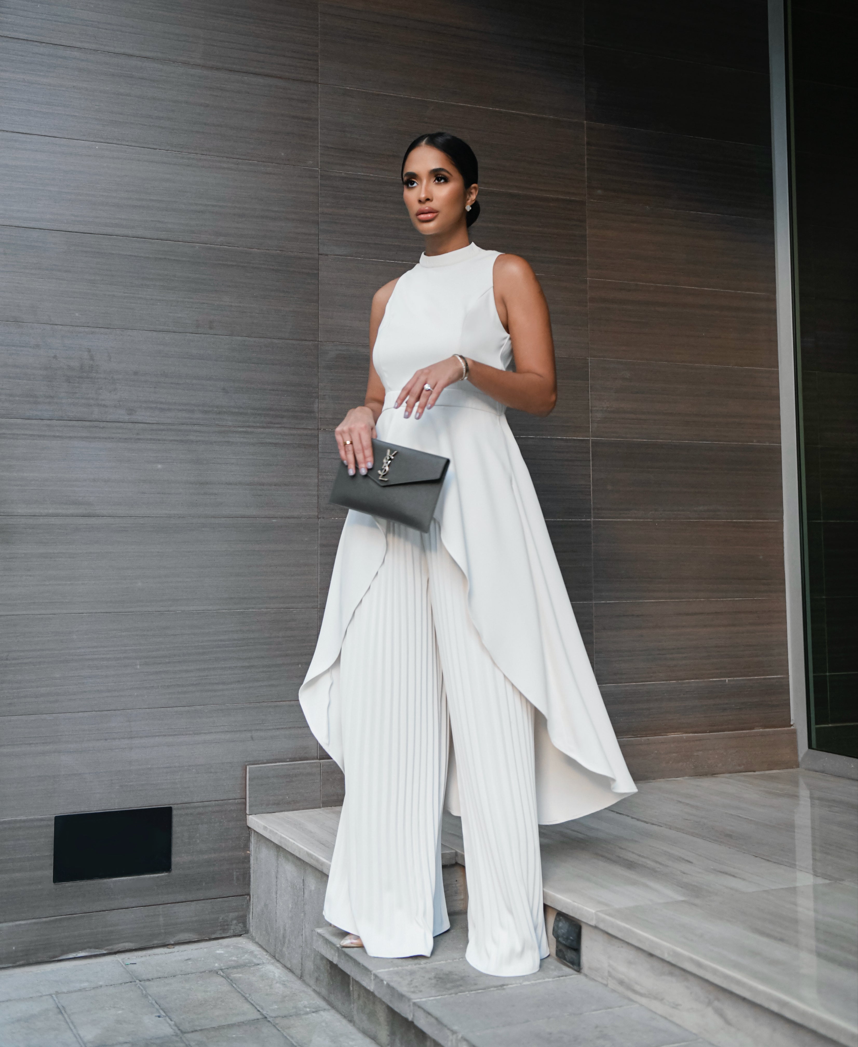 - Model wearing 4" heels